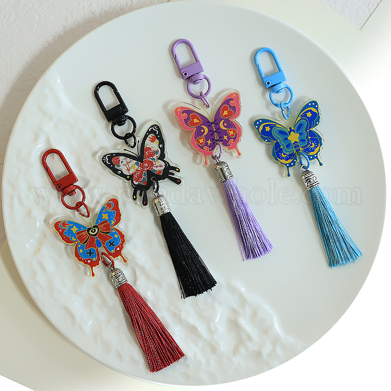 Пластиковые бабочки подвесные украшения, подвеска-кисточка для рюкзака, брелок, украшения