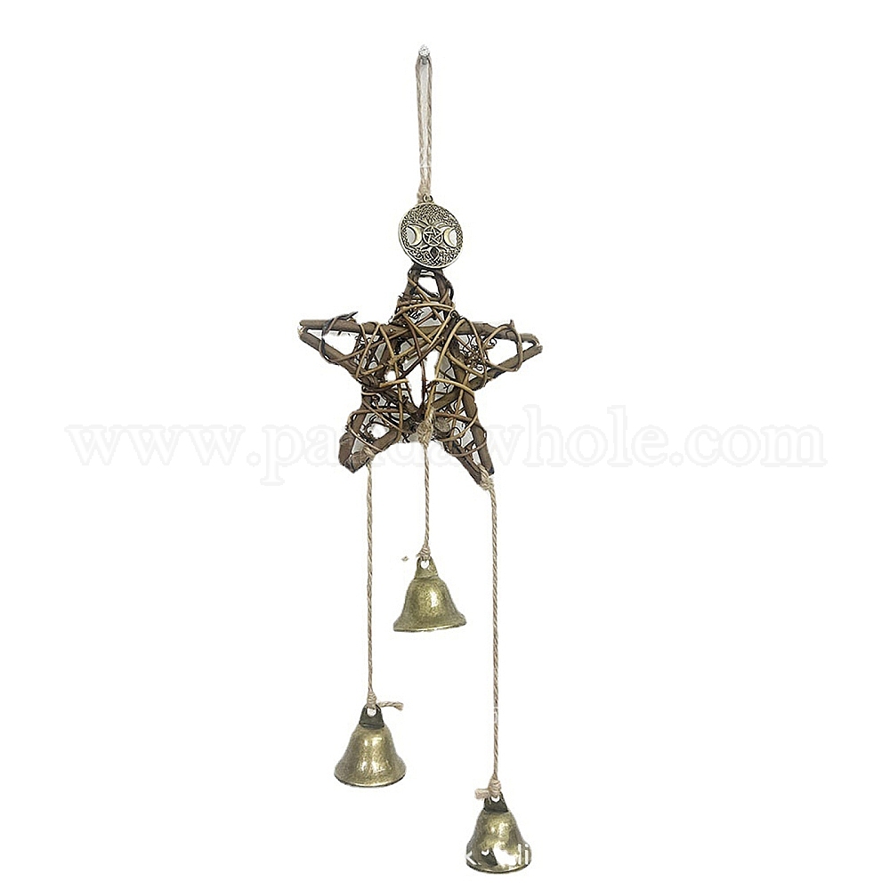 Защитные колокольчики ведьмы, круг из виноградной лозы пеньковая веревка пентаграмма ведьма дверь висит