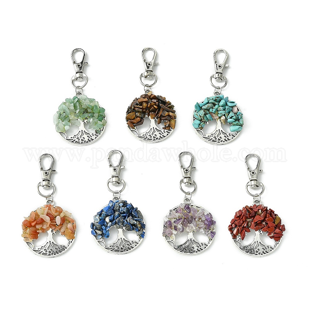 7шт. Дерево Лифа, подвесные украшения с драгоценными камнями, Поворотные застежки из сплава для украшений сумок