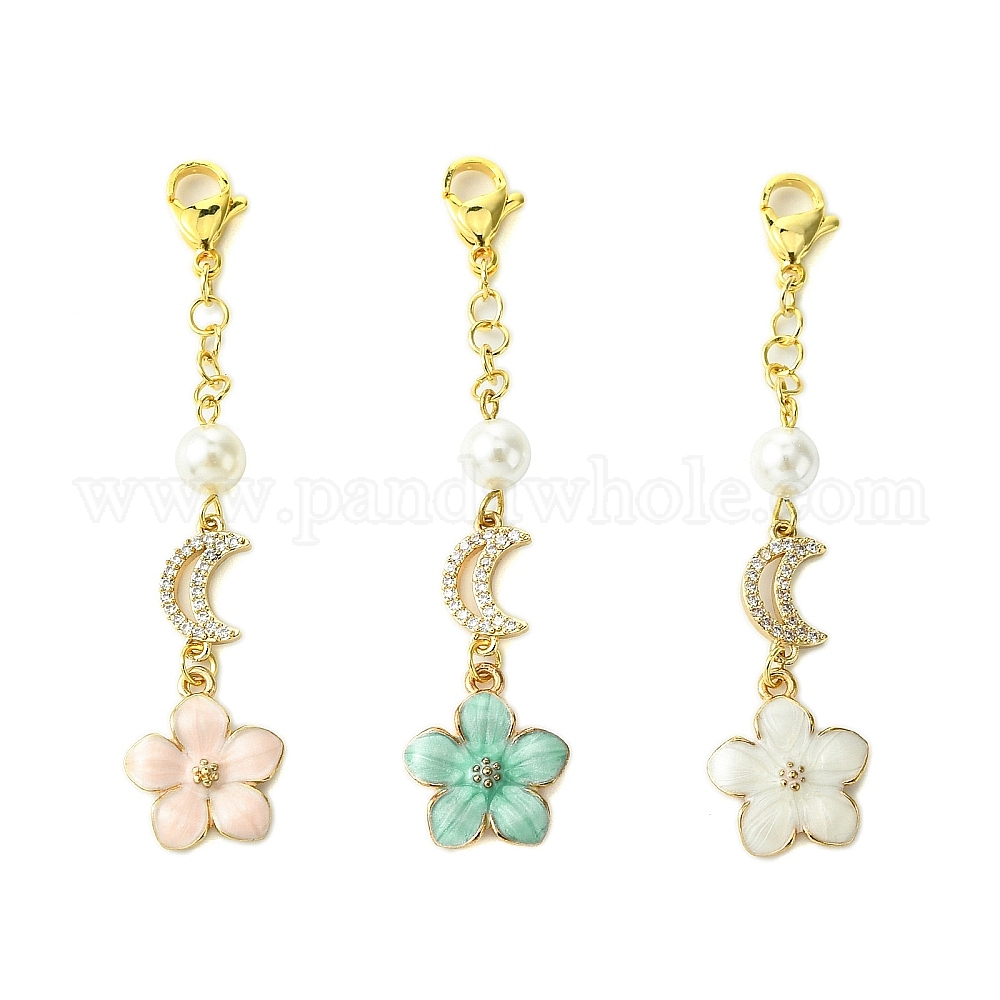 3 шт. 3 цвета, подвески из эмали из цветочного сплава, украшения, жемчужные бусины из ракушек и застежки-когти-омары для украшений для ключей сумки