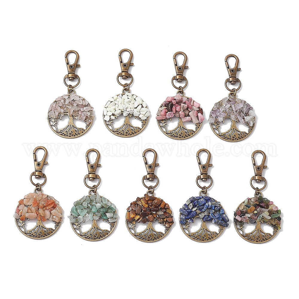 Плоские круглые подвески из сплава в тибетском стиле с древом жизни, украшения, с бусинами из смешанных синтетических и натуральных драгоценных камней, античная бронза