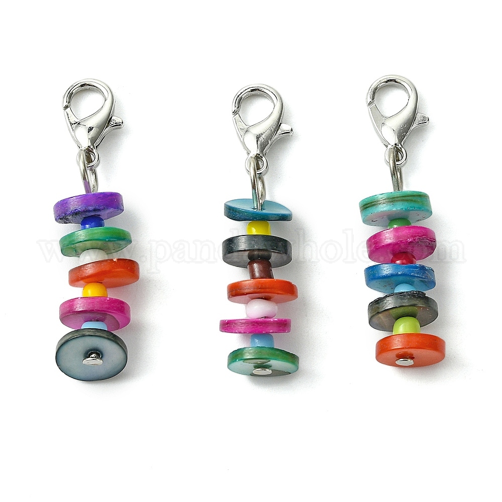 Плоские круглые/дисковые подвески из натуральных пресноводных ракушек, Сплав с застежками когтя омара