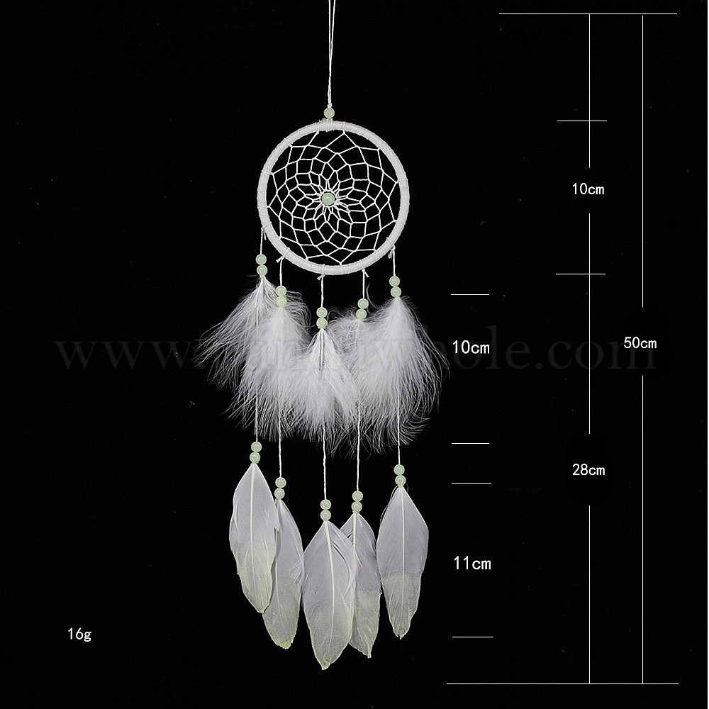 • Белый Тканая паутина/сетка с подвесными украшениями из перьев, плоский круглый для интерьера комнаты украшение дома, белые, 500x110 мм