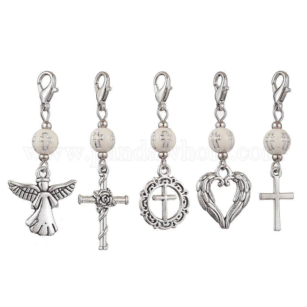 Подвеска в виде ангела и креста из сплава, круглые акриловые бусины и застежки-клешни для украшений сумок