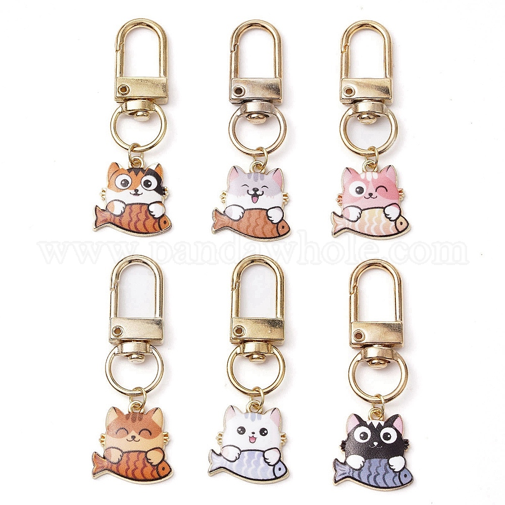 Подвеска из эмали с котом и рыбой, Поворотные застежки-брелки для украшения сумок