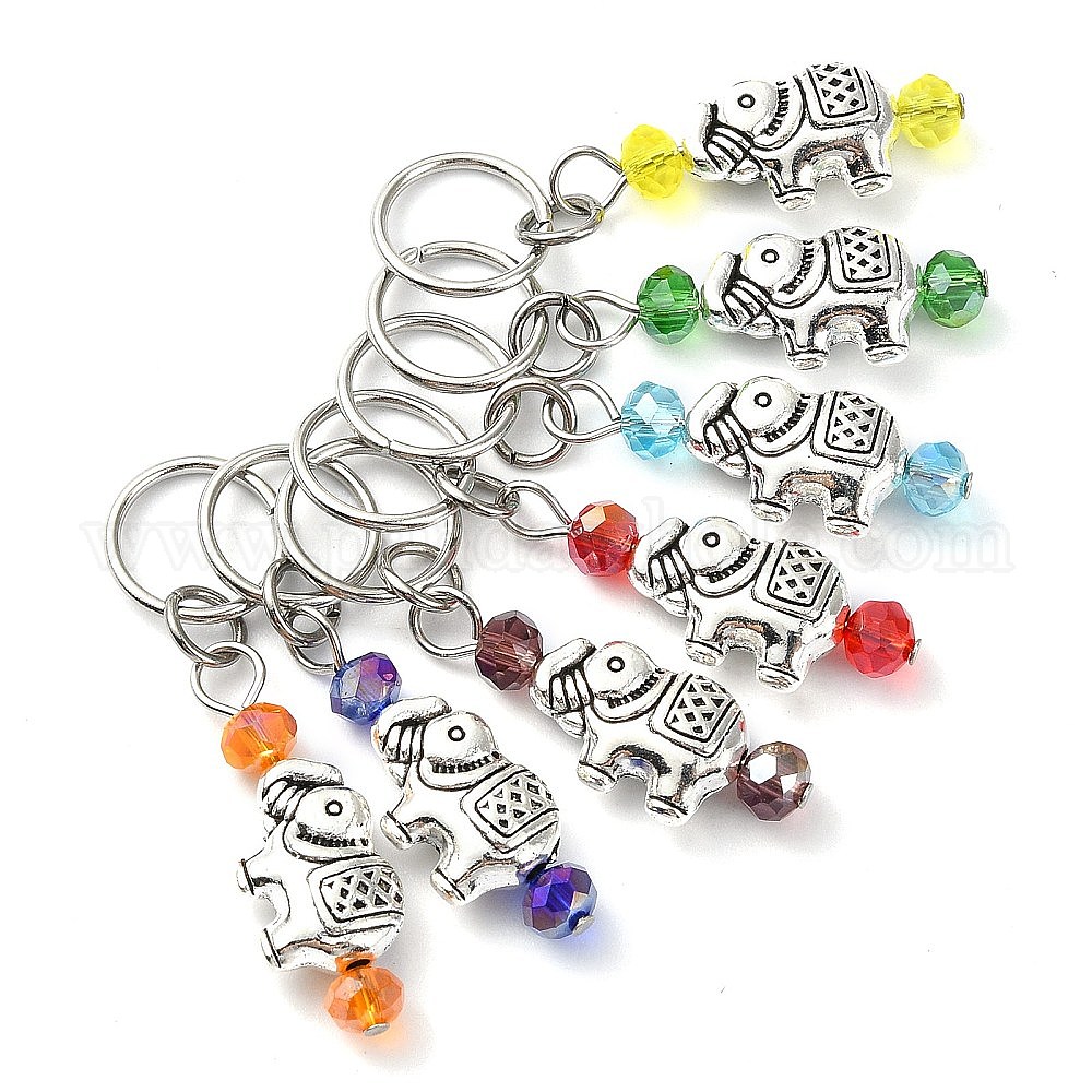 7 шт. 7 цветные стеклянные и тибетские сплавы подвески в виде слона, с 304 кольцом из нержавеющей стали