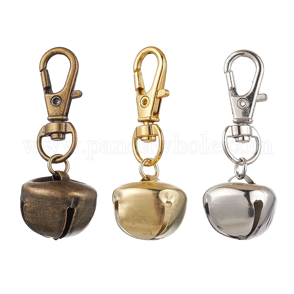 3шт 3 цвета железный колокольчик подвеска украшение, сплав поворотные карабины-клешни подвески для рюкзака брелок украшения