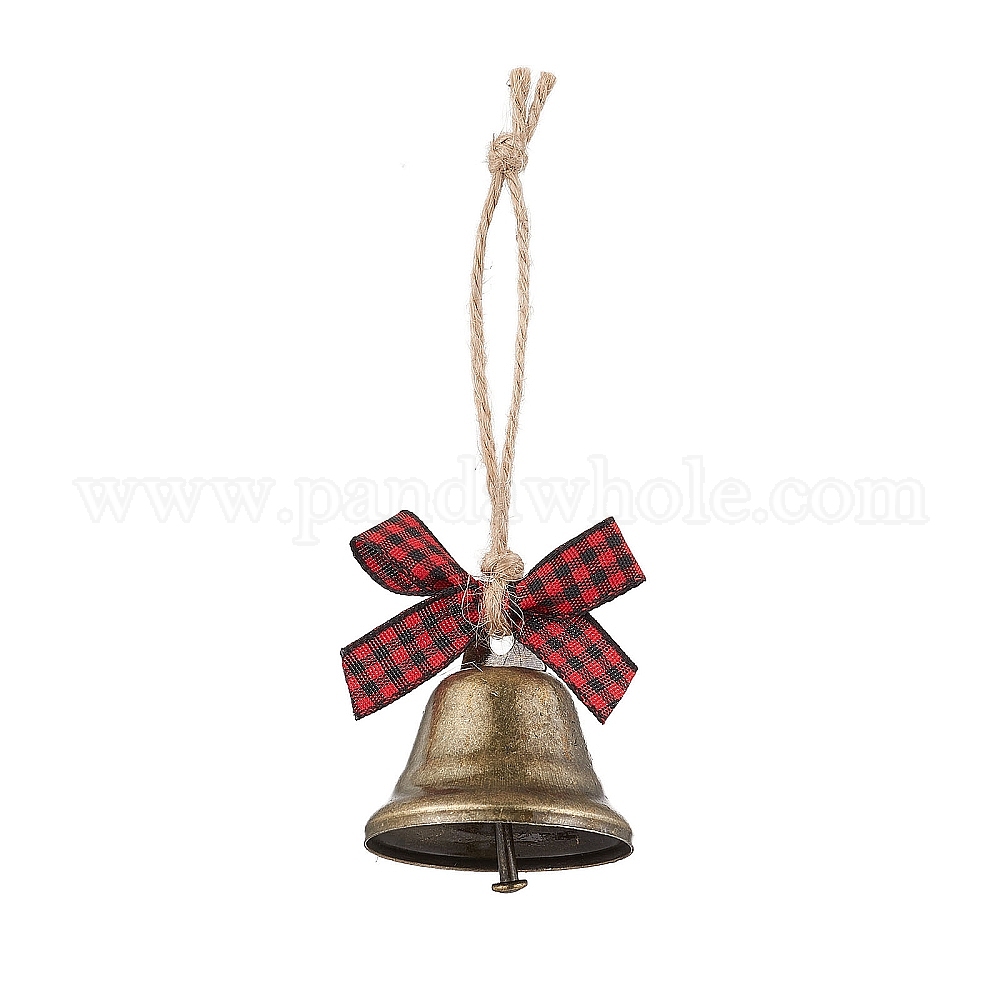Железный колокольчик, Бантик из полиэфирного тартана и джутовый шнур для украшения двери дома