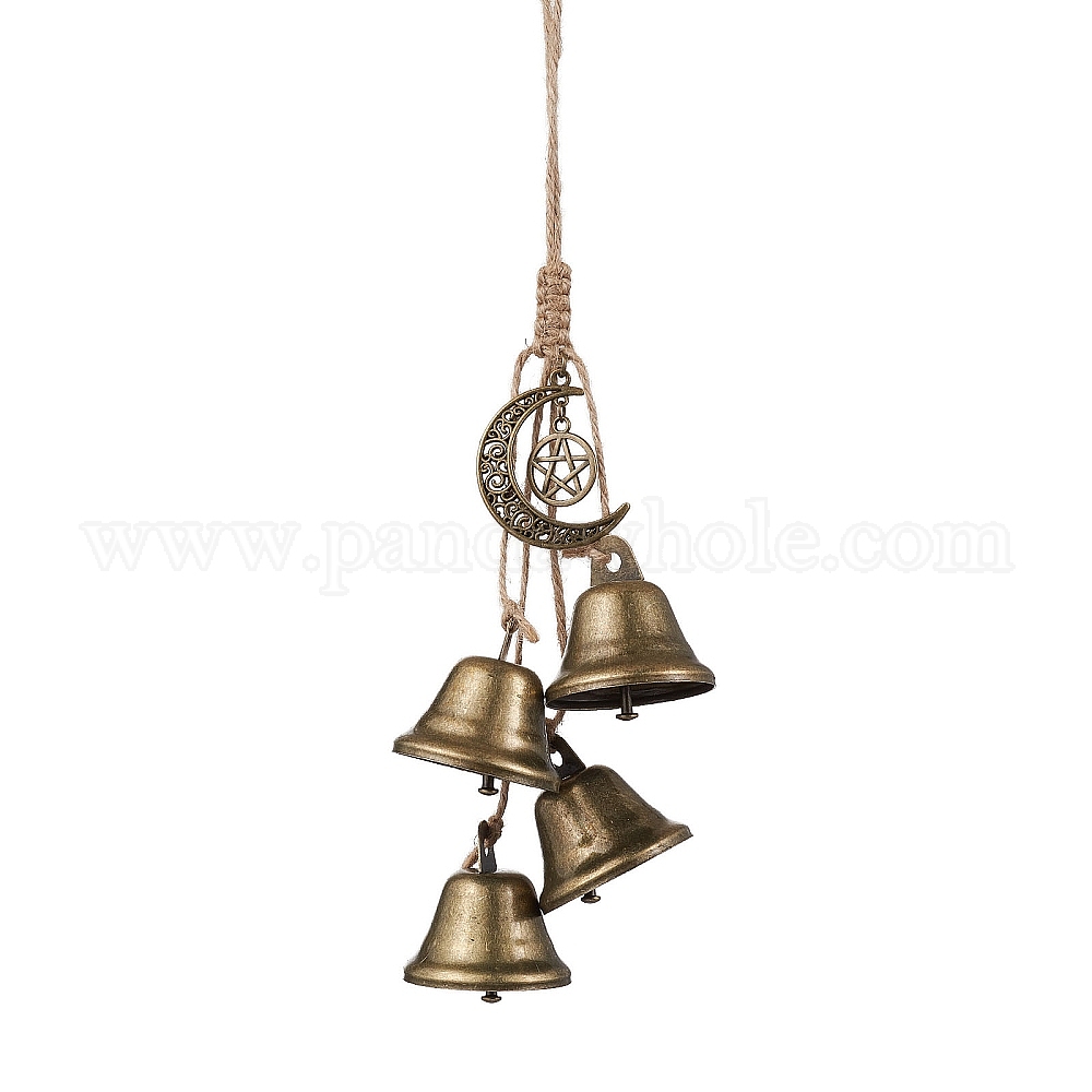 Железный колокольчик, сплав луны, звезды и джутового шнура для украшения двери дома