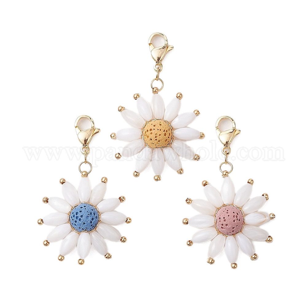 Подвеска в виде цветка из натуральной лавы и ракушек, 304 подвеска-застежка-лобстер из нержавеющей стали для украшения сумок