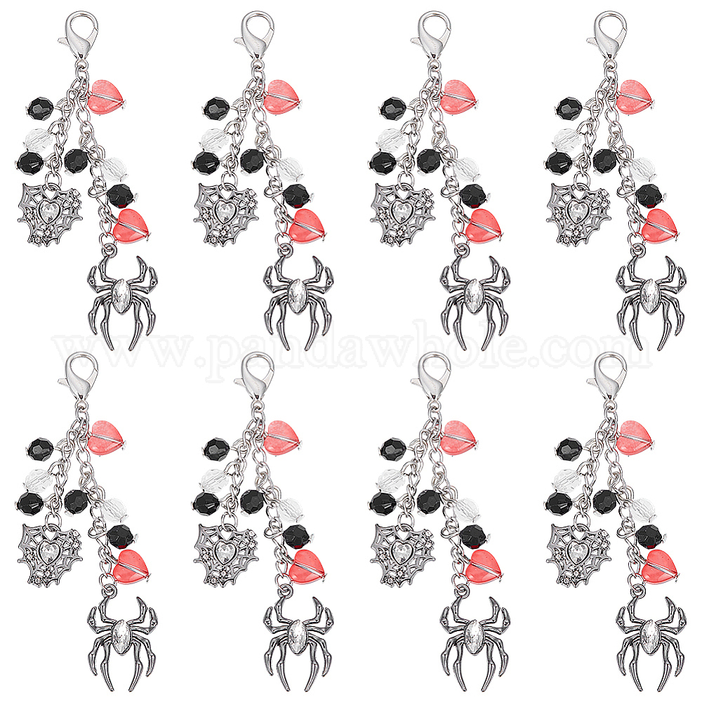 8 шт. Хэллоуин паук и паутина акриловые и сплав подвеска украшение, Сплав с застежками когтя омара