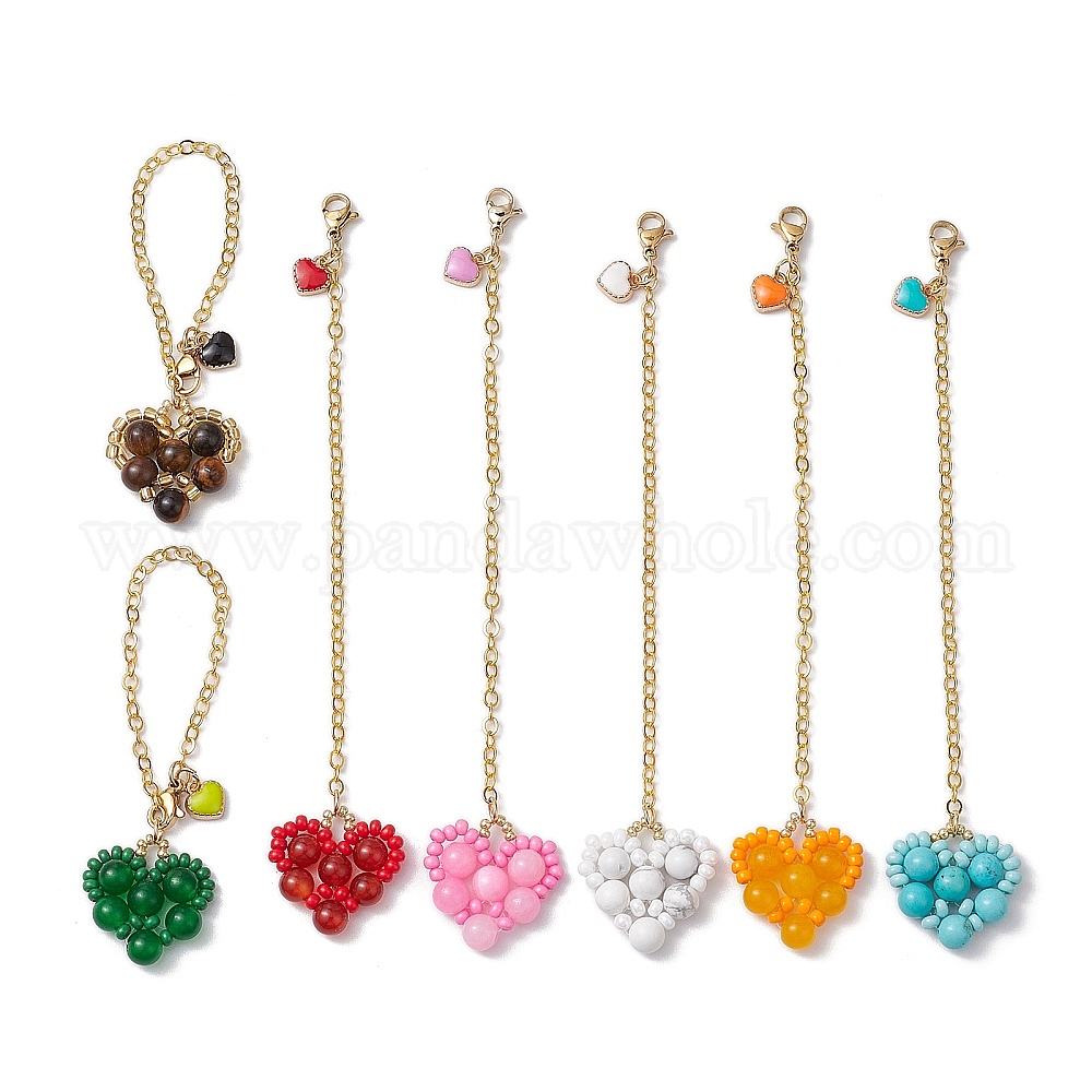 Подвеска ко Дню святого Валентина из стеклянных бусинок, натурального сердолика, желтого нефрита, хаулит, тигрового глаза, малайзийского нефрита и синтетической зеленой бирюзы, с подвесками из сплава сердца с эмалью (02XPAX)