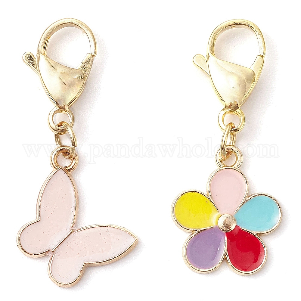 Подвеска из сплава с бабочкой и цветком, эмалированное украшение, 304 подвески-застежки-лобстеры из нержавеющей стали для украшений сумок (02XS8F)