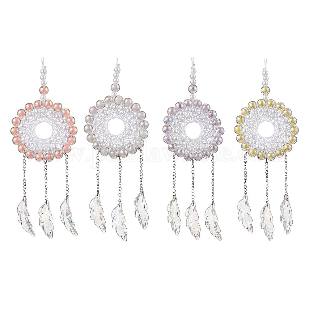 Акриловая плетеная сетка/паутина с подвесными украшениями из перьев, подвесные украшения для дома