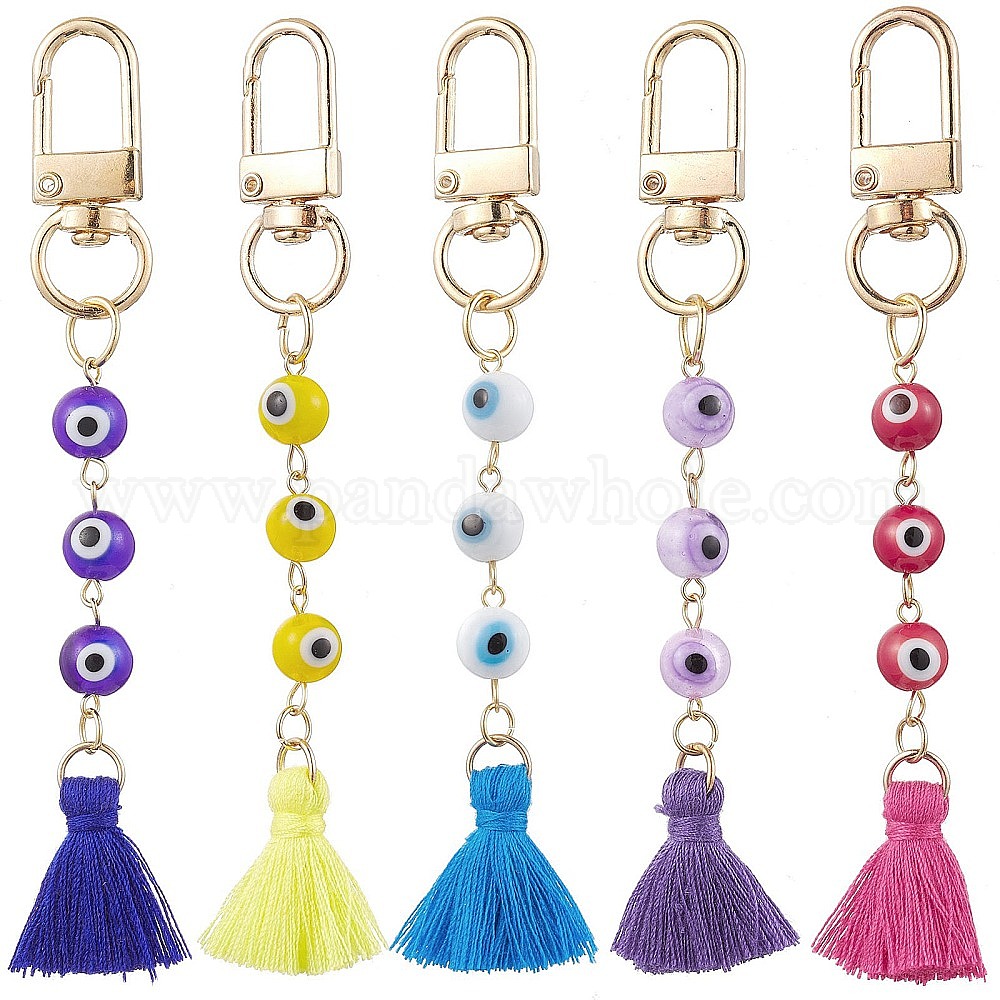 Украшения с подвесками лэмпворк от сглаза, подвески из поликоттона с кисточками и поворотными застежками для украшений сумок (02XS9H)