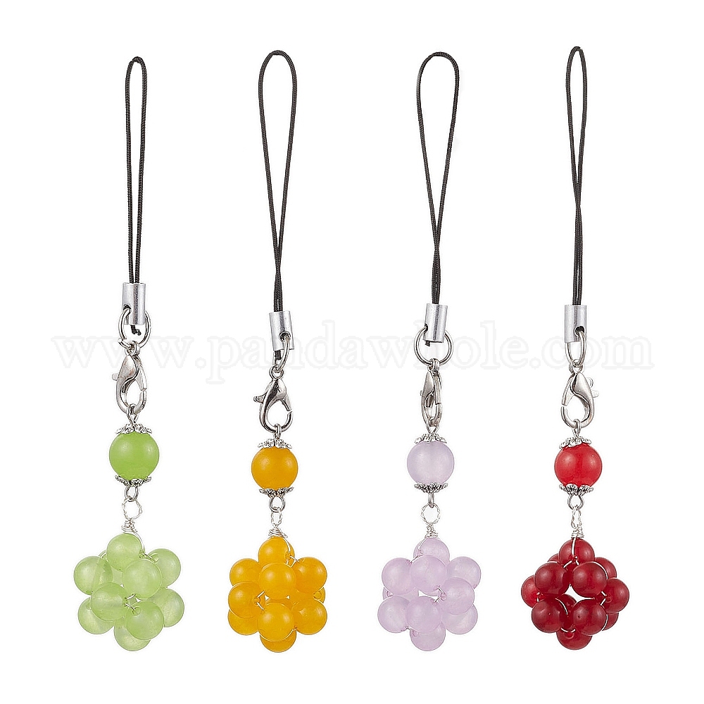 Подвеска из натурального и окрашенного малайзийского нефрита с цветком, нейлоновый шнур для ремешка мобильного телефона, украшения для сумок