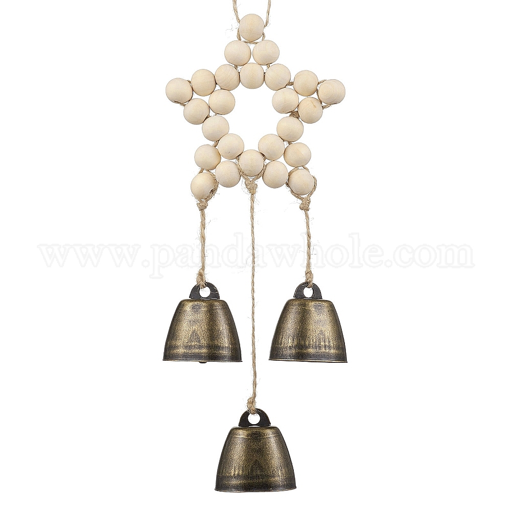 Звезда деревянные бусины подвесные украшения, железные колокольчики-подвески для украшения настенной двери дома