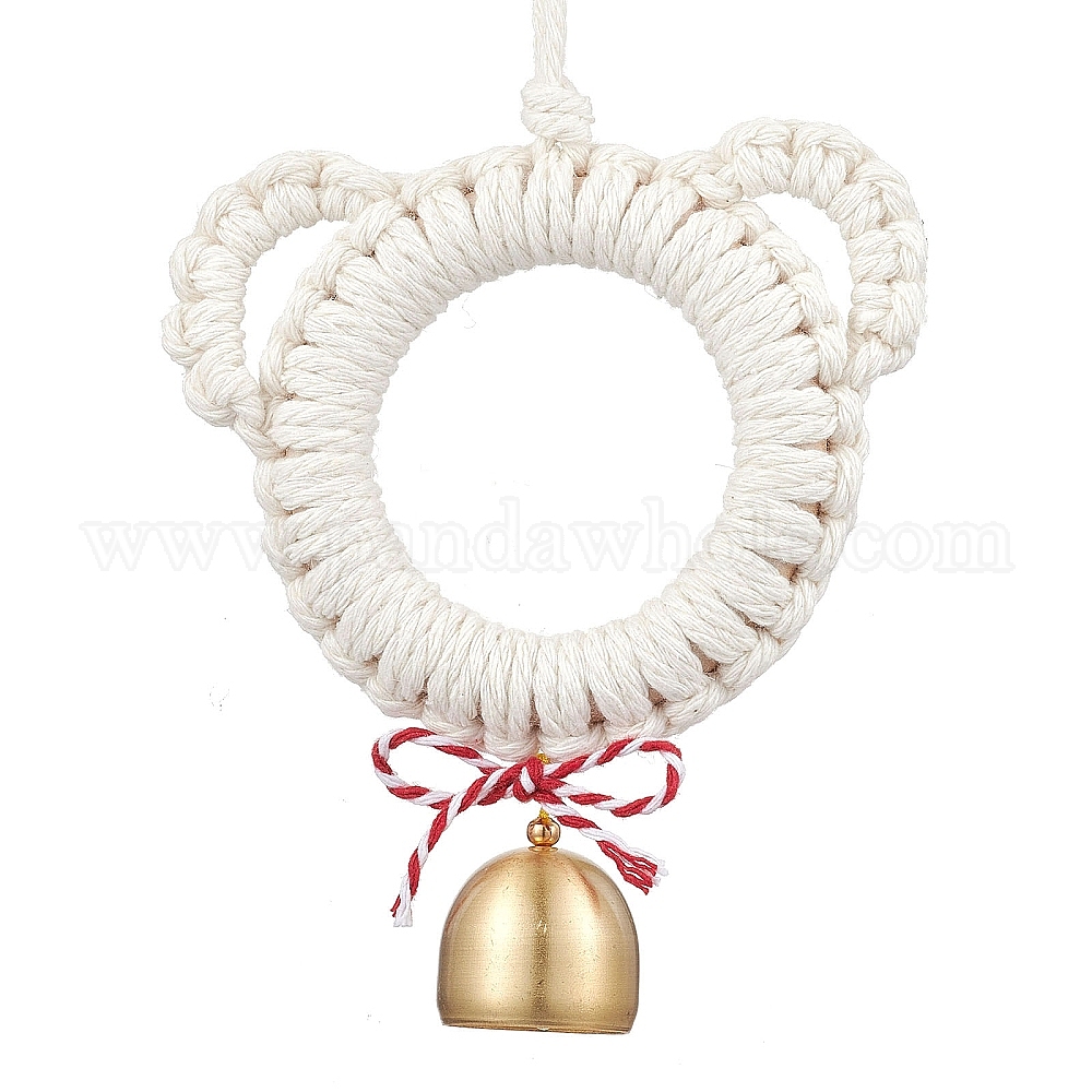 • Белый Подвеска в виде головы медведя из дерева и хлопковых ниток, с латунной колокол, подвесные украшения для домашней стены и двери, белые, 258 мм