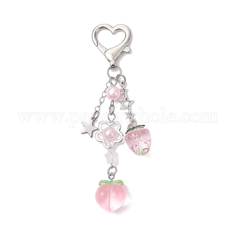 • Pink Подвесные украшения из акрила и смолы персиково-клубничного цвета, Шарм из сплава с вращающимися застежками в форме сердца для украшений сумок, розовые, 103 мм