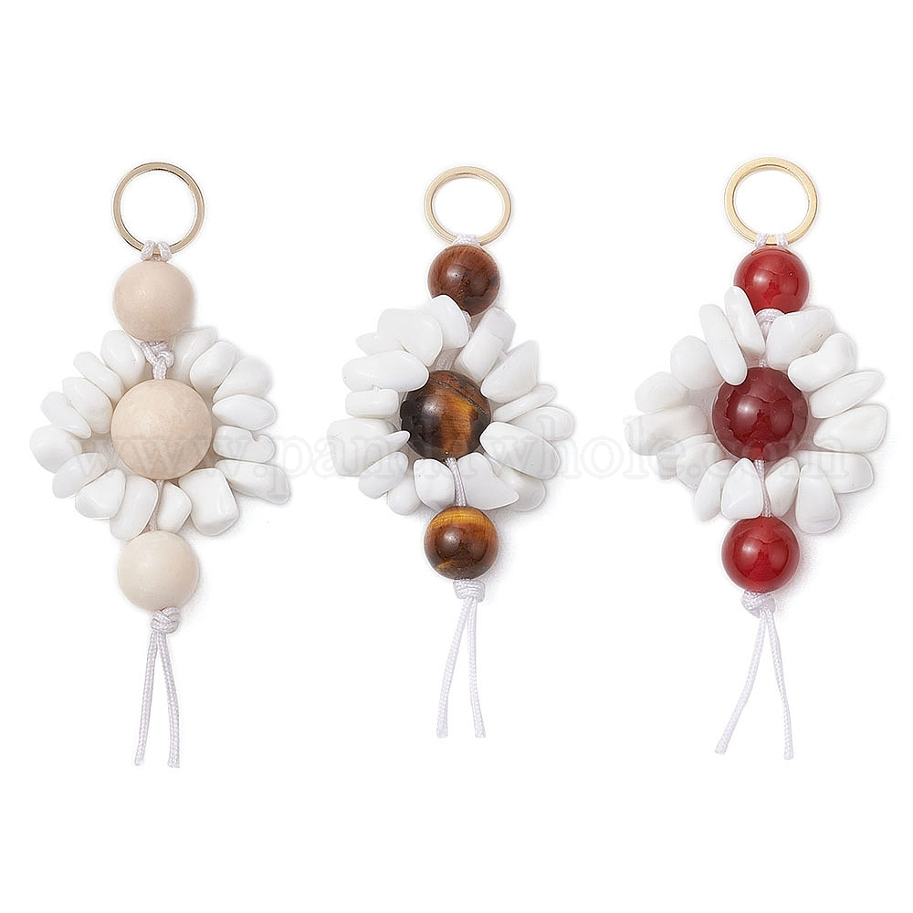 Подвесные украшения из натуральных драгоценных камней и стеклянных бусин, латунные соединительные кольца натуральные