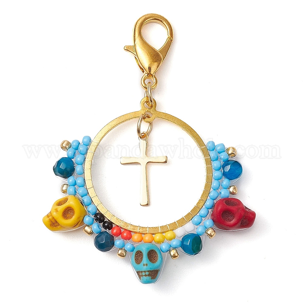 Подвеска из искусственной бирюзы в стиле бохо-стекла с семенами и черепами, 304 подвески из нержавеющей стали в виде креста и карабина для украшения сумок