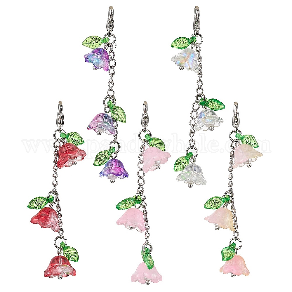 Подвесные украшения из акрила и стекла «Ландыш», Подвеска-застежка-когти омара для украшения сумки