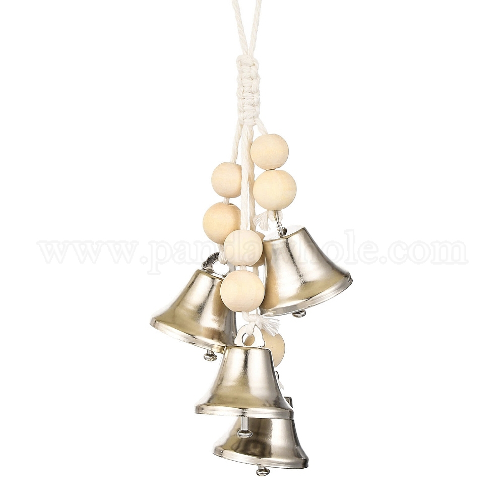 • Платина Железный колокольчик подвесные украшения, деревянная круглая бусина и хлопковый шнур для украшения стены двери дома, платина, 248 мм