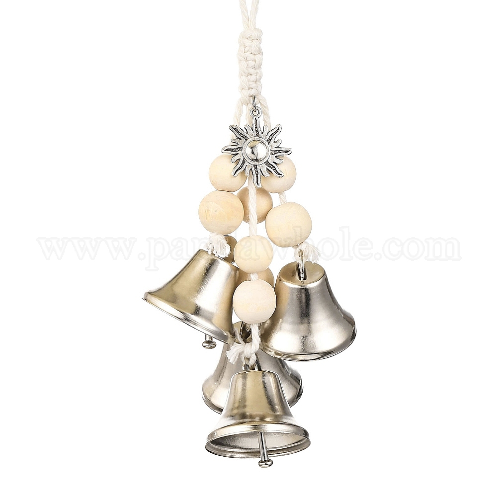 Железный колокольчик и сплав подвесных украшений в виде солнца, деревянная круглая бусина и хлопковый шнур для украшения стены двери дома