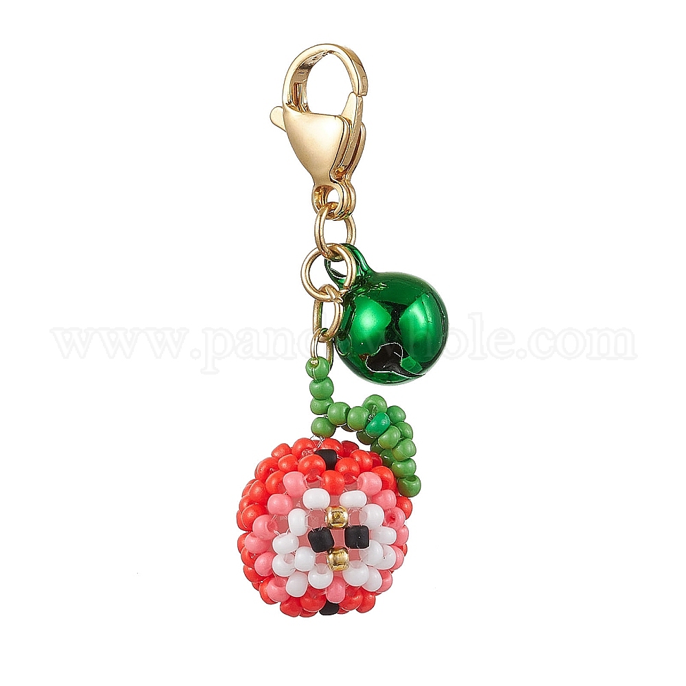 Подвеска из стеклянных бусин яблоко, латунный колокольчик и 304 подвески-застежки-лобстеры из нержавеющей стали для украшения сумок