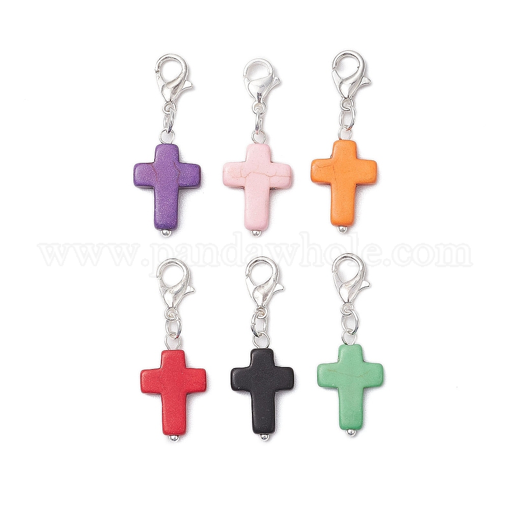 6шт. синтетическая бирюза крест подвеска украшения, Застежки-когти из цинкового сплава, подвески для украшений сумок