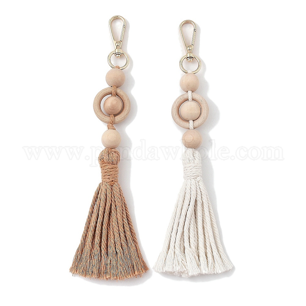 Подвесные украшения ручной работы из нейлоновых ниток в технике макраме, деревянные бусины и застежки из сплава, подвески для украшений сумок или брелоков
