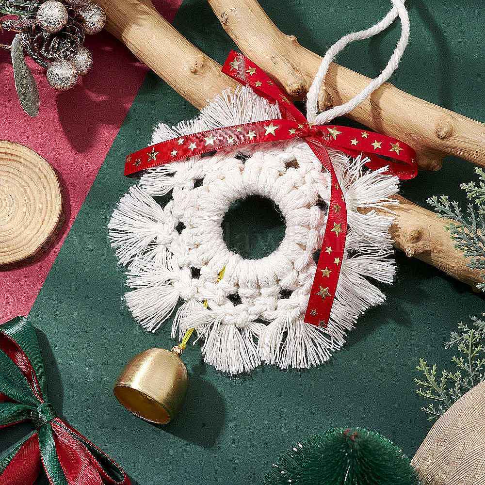 Рождественские украшения ручной работы из хлопчатобумажной нити в технике макраме со снежинками, латунный колокольчик и деревянные кольца для украшения домашней вечеринки (02YKW8)
