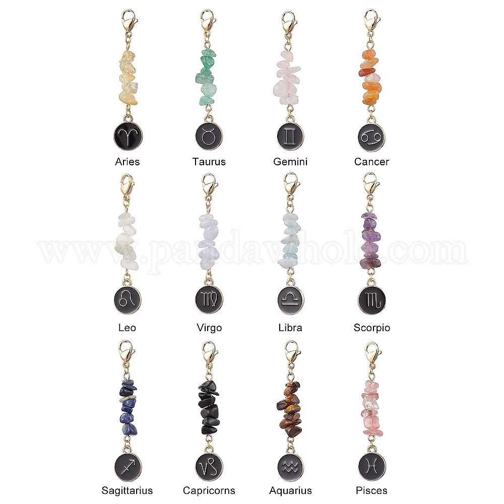 12шт. сплав эмали плоский круглый с 12 созвездиями подвесные украшения, натуральные и синтетические драгоценные камни, застежки-клешни в виде омаров, подвески, украшения
