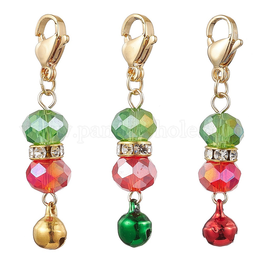 3подвесные украшения из стеклянных бусин, с 304 карабинами из нержавеющей стали и латунным колокольчиком