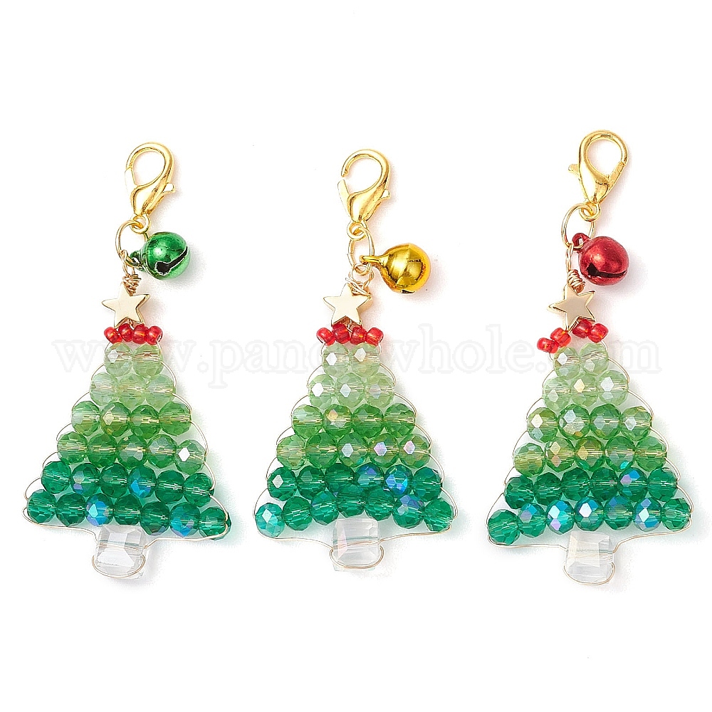 Рождественские елки стеклянные бусины подвесные украшения, застежки-клешни из сплава для украшений сумок (02YMJK)