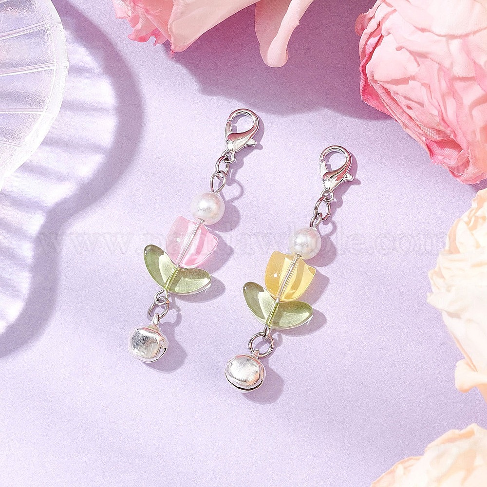 Стеклянные тюльпаны подвесные украшения, застежки-лобстеры из сплава для брелка, кошелек, украшение для рюкзака (02YPF2)