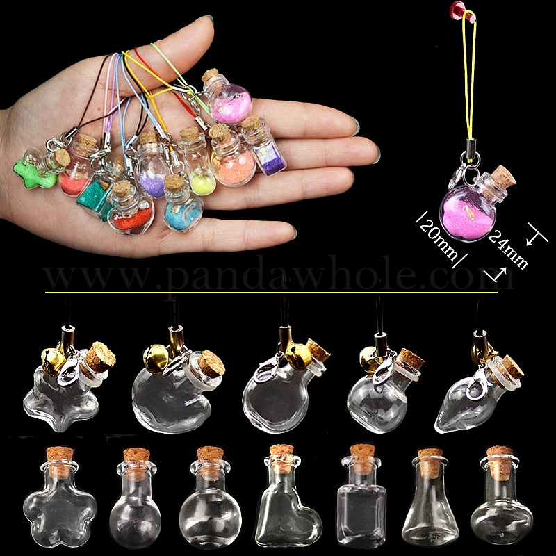 Прозрачные стеклянные бутылки с желаниями подвески украшения, с пробкой и шнуром