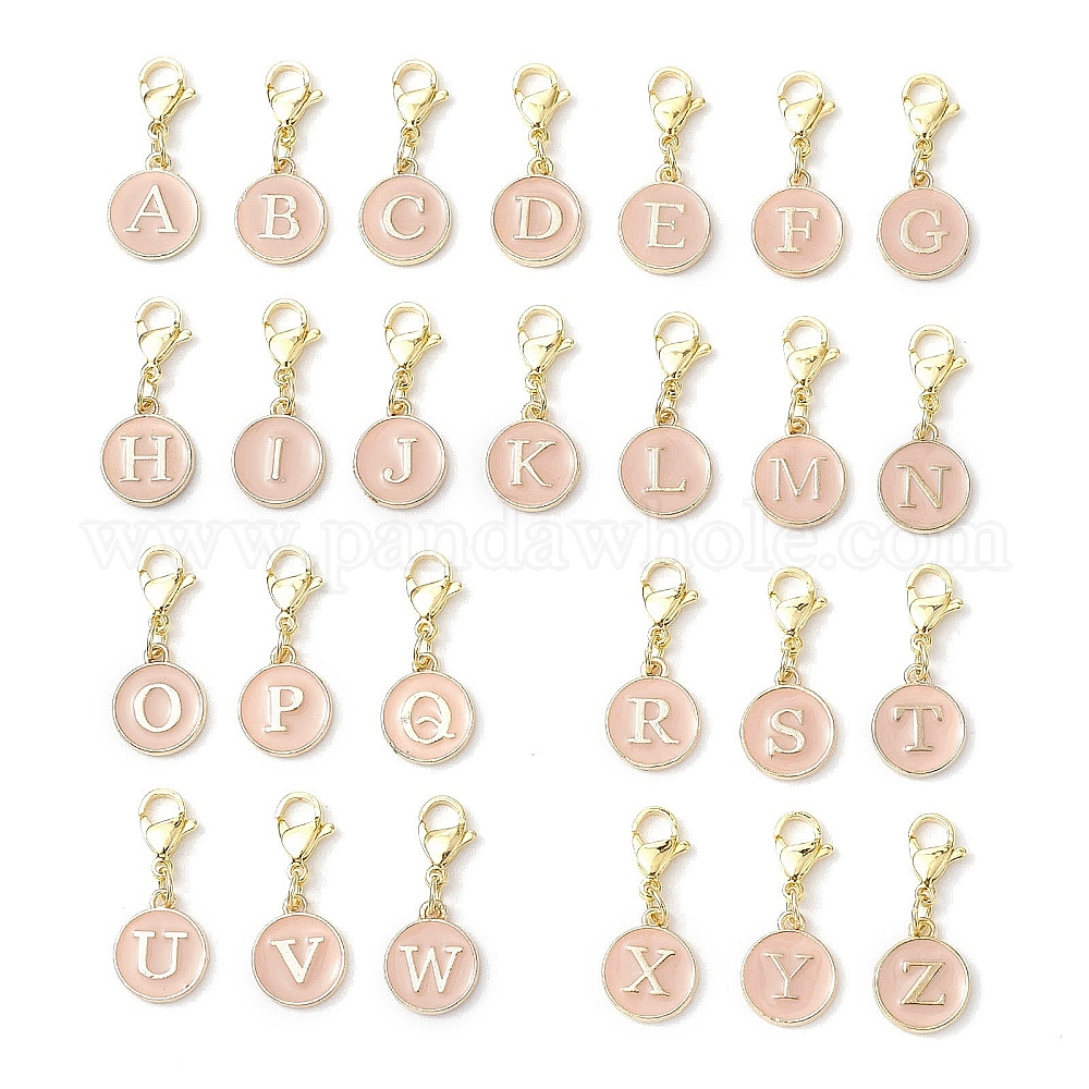 26шт. плоские круглые с буквой a~z сплав эмалированные подвесные украшения, 304 подвески-застежки-лобстеры из нержавеющей стали для украшений сумок