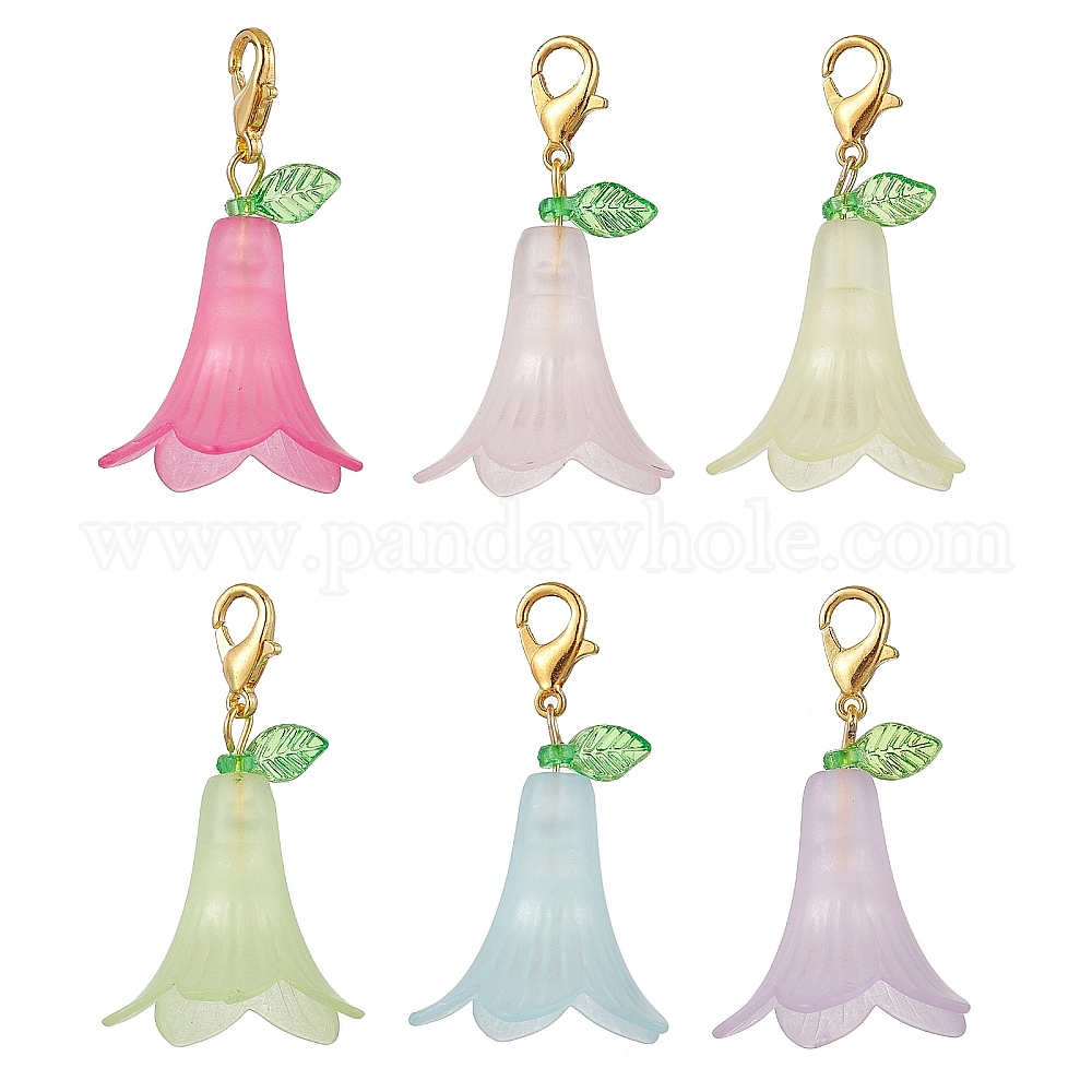 6шт 6 цвета цветы акриловые подвесные украшения, застежки-карабины из сплава для украшений сумок