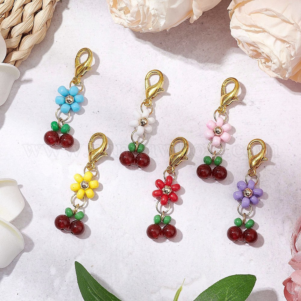 6 шт. 6 цвета вишневые стеклянные бусины и натуральные сердолики подвески украшения, с цинковым сплавом застежками омаров коготь