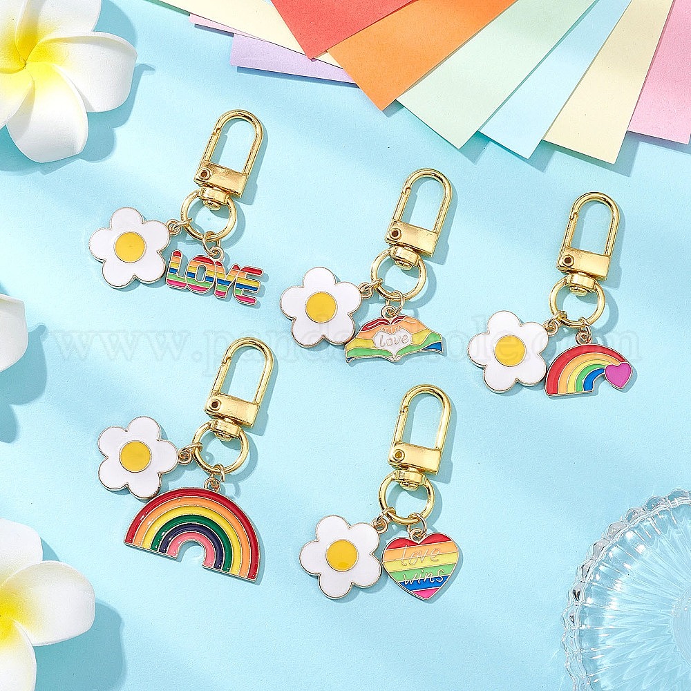 Подвеска с эмалью из сплава цветов и радуги, Поворотные застежки-брелки для украшения сумок