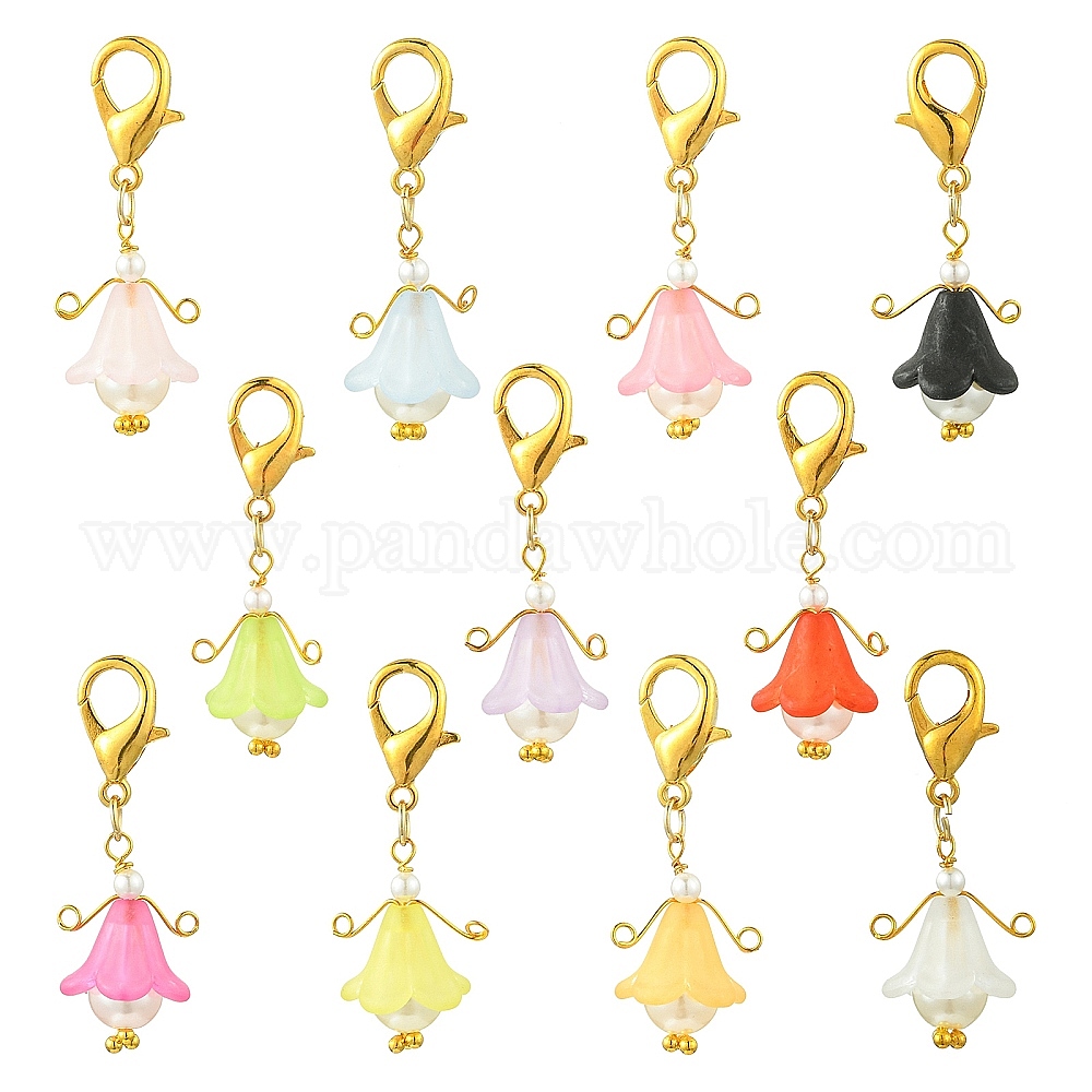 11шт. пластиковый жемчуг и акриловый кулон украшение, Сплав с застежками когтя омара, цветок