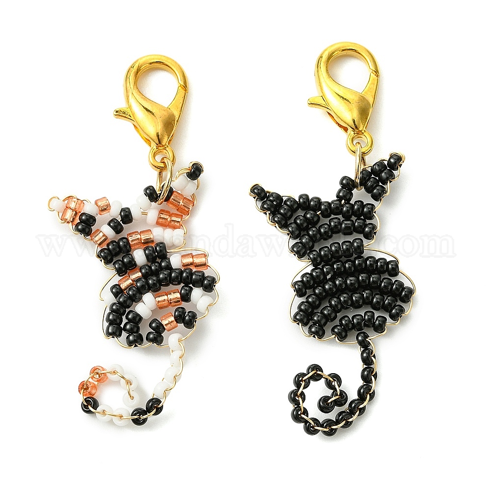 2 шт 2 цвета кот стеклянный бисер ткацкий станок узор подвеска украшение, Сплав с застежками когтя омара, золотые