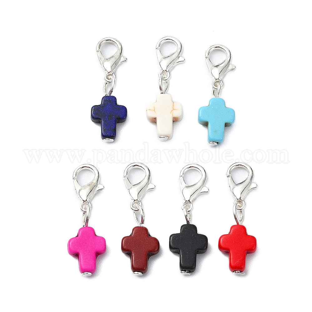 Подвеска-крест из окрашенной синтетической бирюзы, Сплав с застежками когтя омара, платина