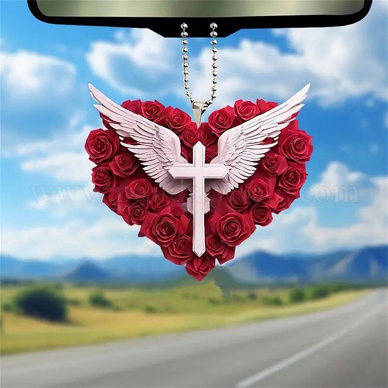 Акриловые сердце крыло крест подвесные украшения, для украшения зеркала заднего вида автомобиля
