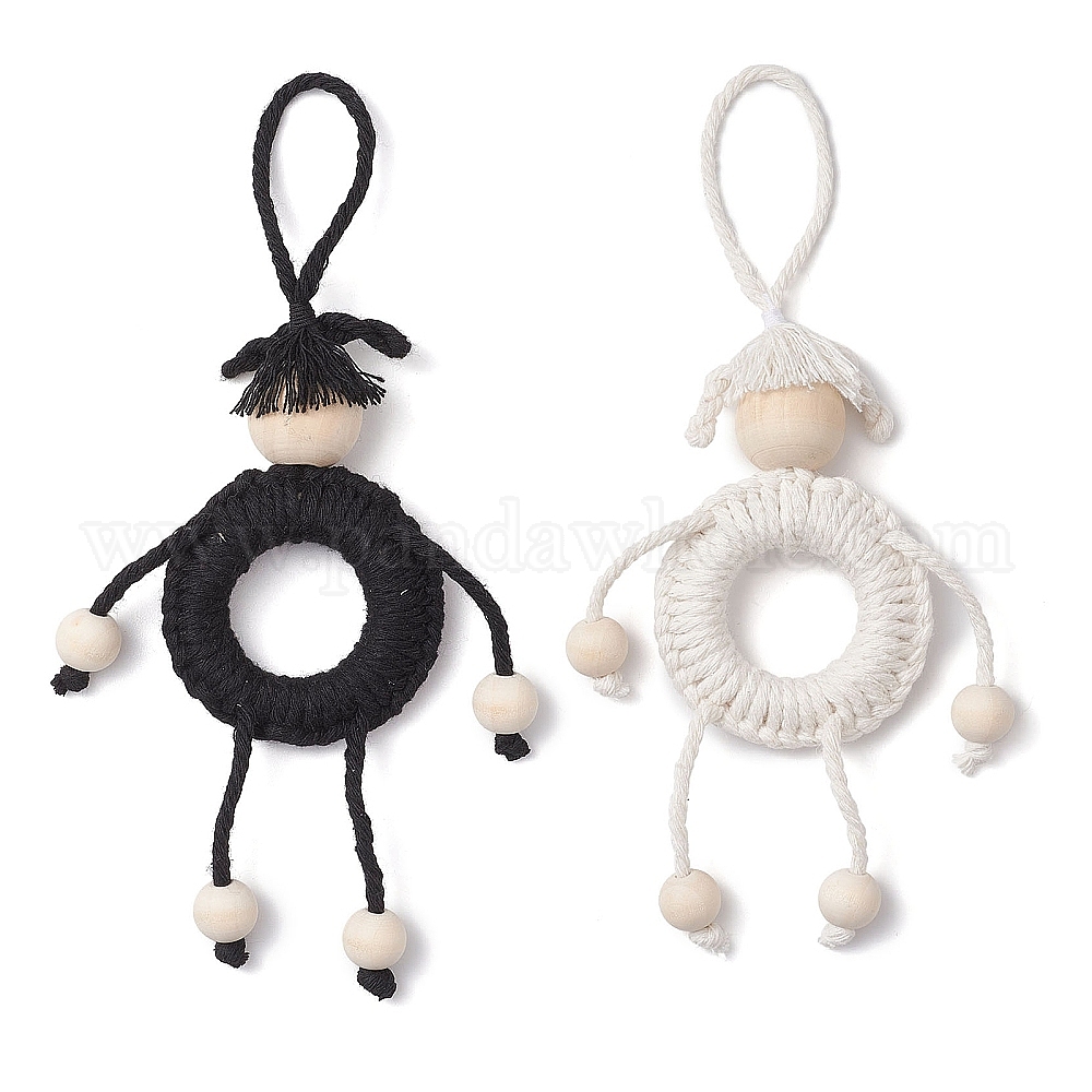 Кукольные украшения ручной работы из макраме из хлопкового шнура, с деревянными бусинами для украшения дома