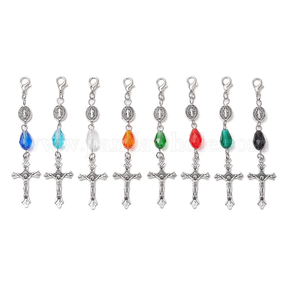 Подвеска-крест в тибетском стиле из сплава, стеклянные бусины-капли и застежки-клешни для украшений сумок (02ZCW9)