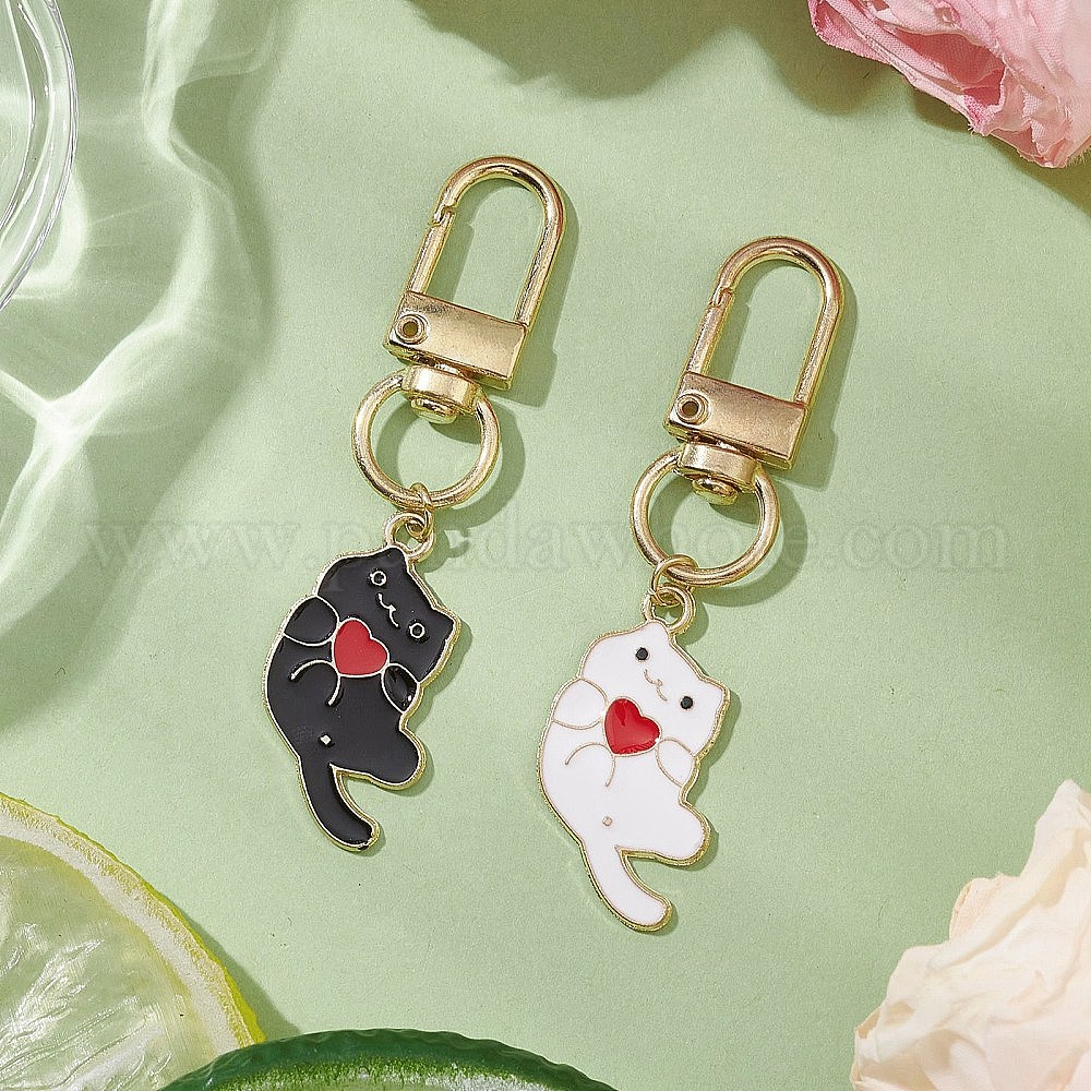 2 шт 2 цвета кошка сплав эмаль подвеска украшения, Поворотные застежки-брелки для украшения сумок