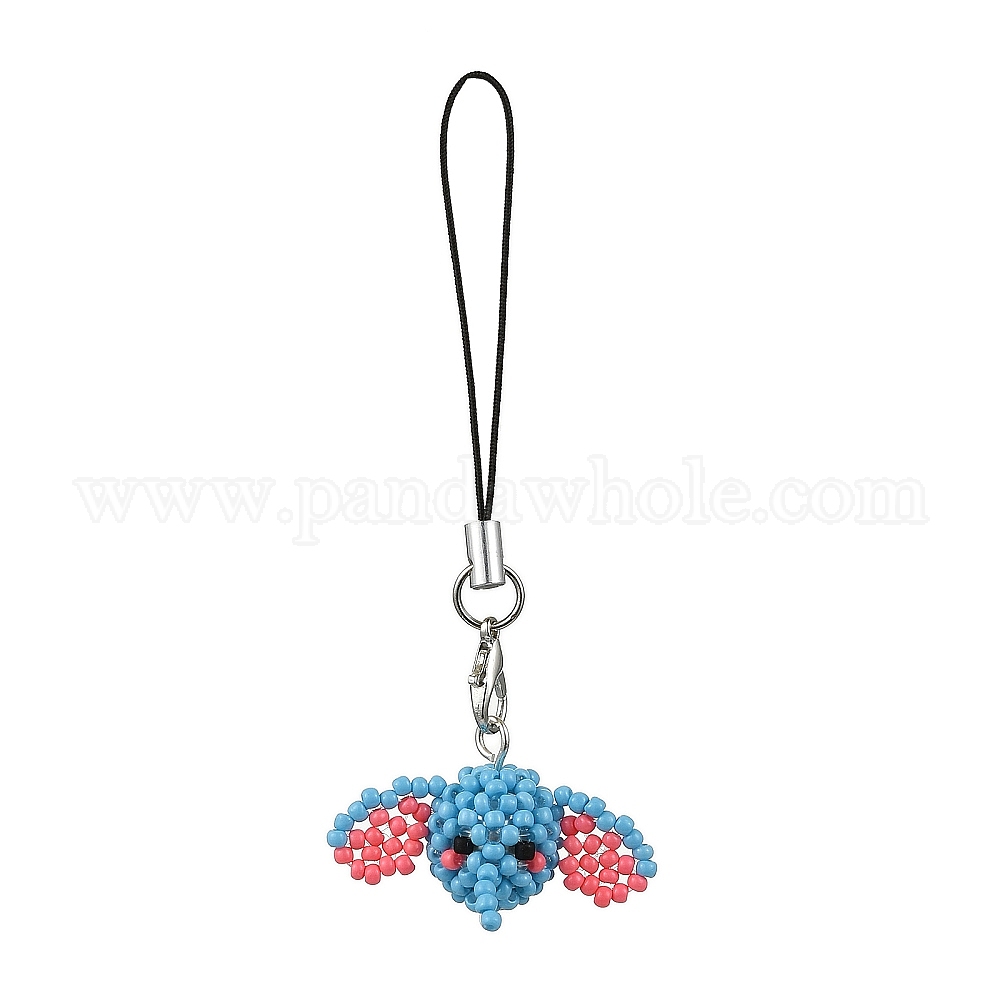 Подвесные украшения из стеклянных бусин в виде слона, с петлей из нейлонового шнура и карабинами из сплава