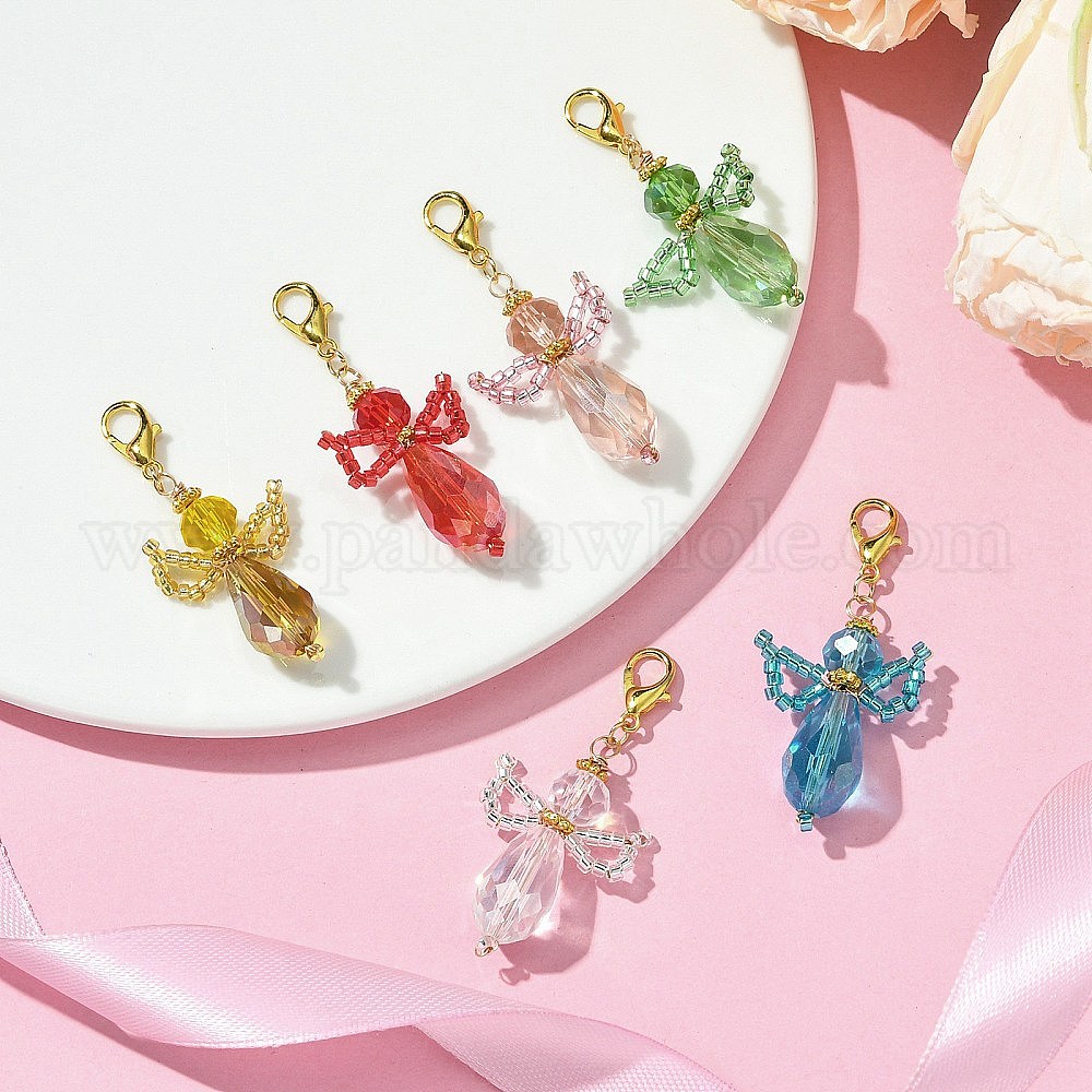 6шт 6 цвета ангел стеклянные подвесные украшения, застежки-карабины из сплава для украшений сумок